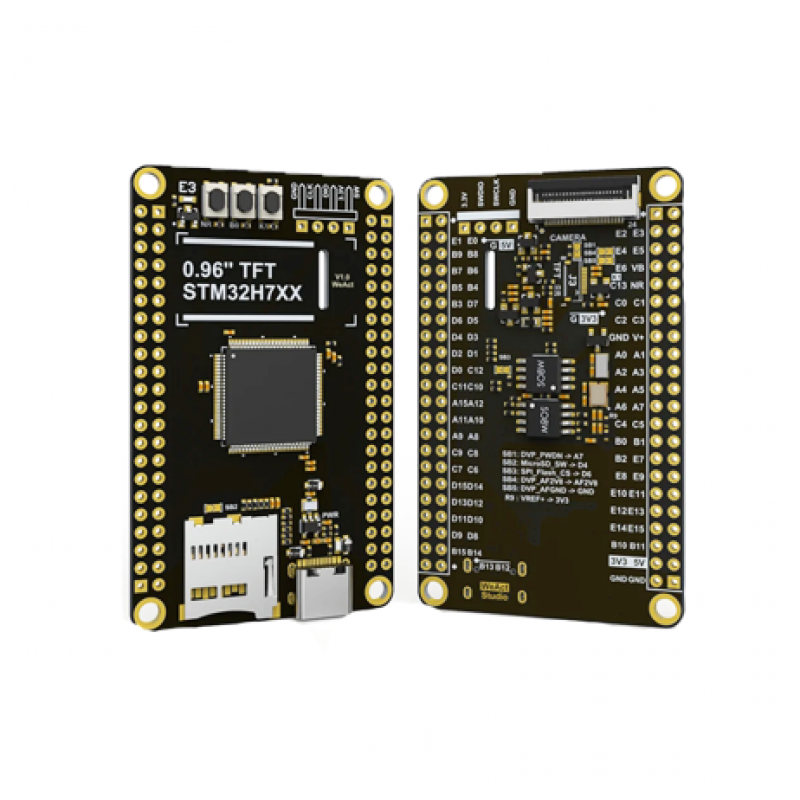 The STM32H7B0VBT6 microcontroller board offers high-performance computing with its ARM Cortex M7Architecture, complete with DSP instructions and memory protection unit. Boasting 280Mhz processing speed, 128KB ROM, and 1.4MB SRAM, it provides robust capabilities for various applications. With features like USB C interface, Mirco SD card slot, and ESD protection, along with support for C language development, this board ensures reliable and versatile performance for embedded systems.
